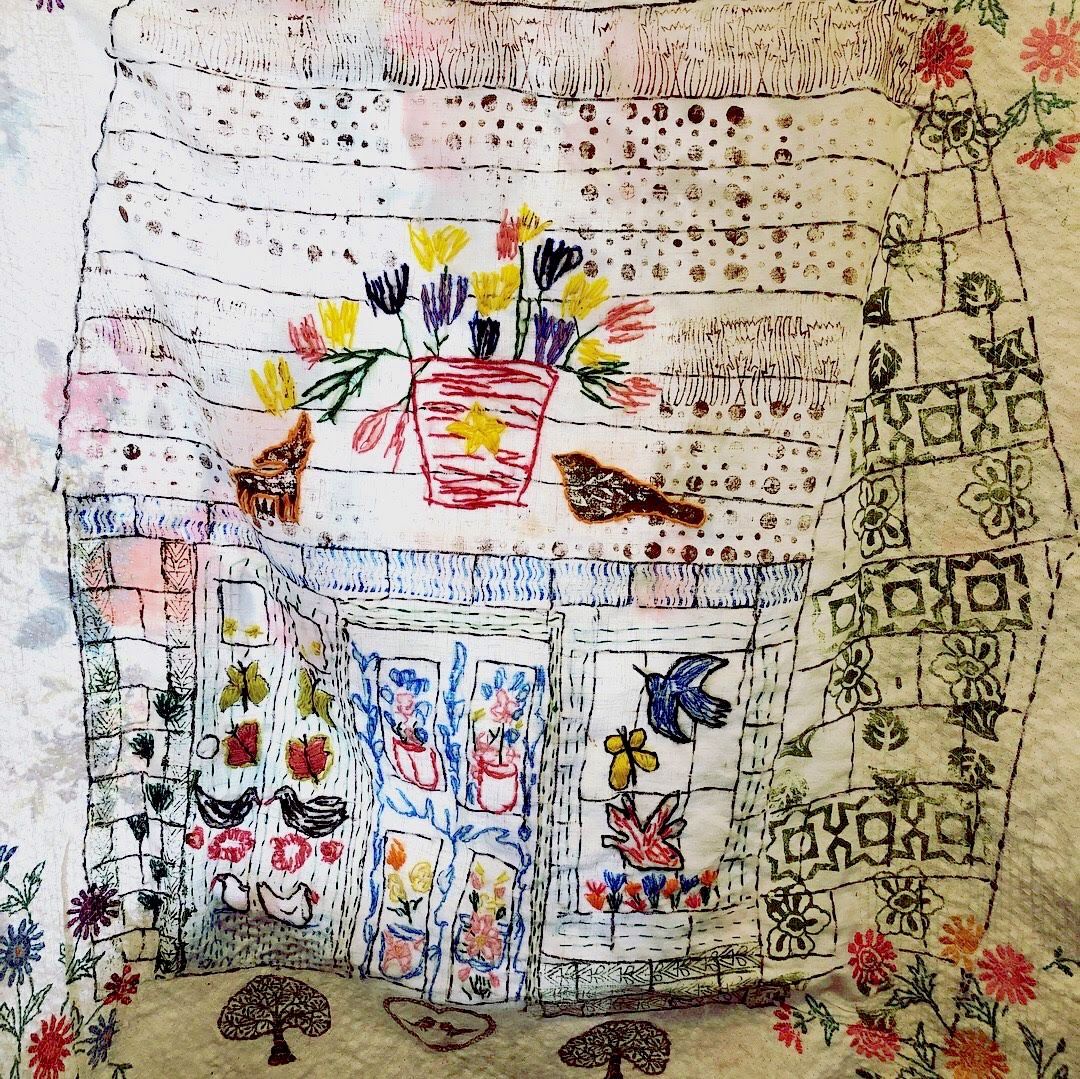 The piece that emerges from your exploration will take the form of an art textile work in progress, advanced enough to finish with minor embellishing after the course. You will also work from your choice of house or place (building) that holds a special memory for you.