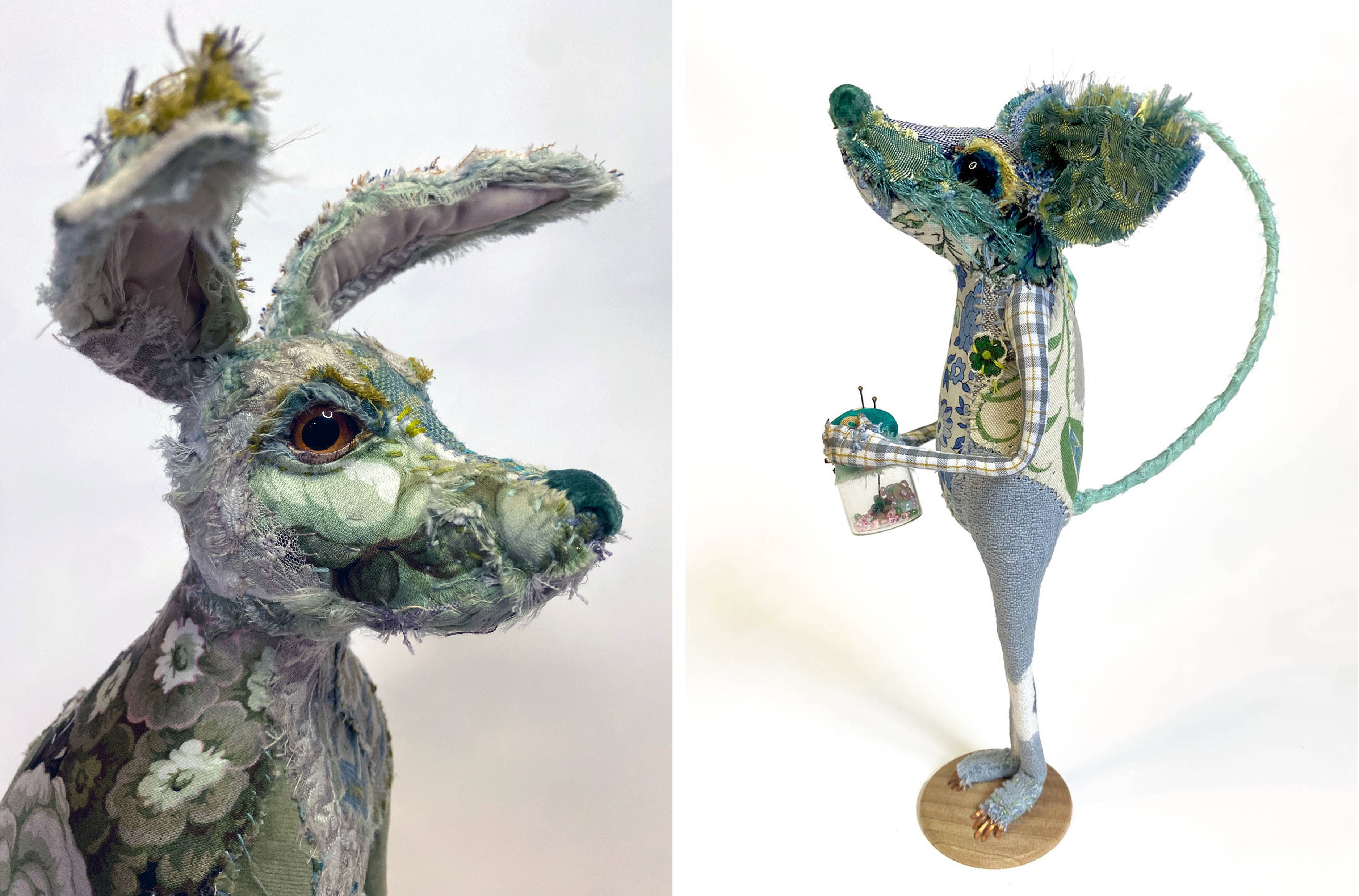 Participants are invited to bring their own treasured fabrics, haberdashery and small found objects to work with. Time-worn cloth, fragments of clothing, old linens or fabrics with a personal history can add depth and meaning to a piece. Buttons, beads, trinkets or natural objects may also find new purpose as features or details. Working with materials that already carry a story can enrich the making process, allowing each creature to become not only a sculpture, but a quiet holder of memory and association.